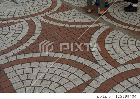 円形 扇型の石畳歩行者遊歩道街1
