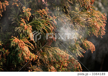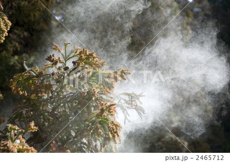 スギ花粉 花粉を飛ばすスギの森林 イラスト