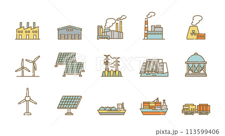 産業 物流 発電 ビジネス アイコン セット