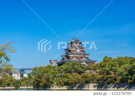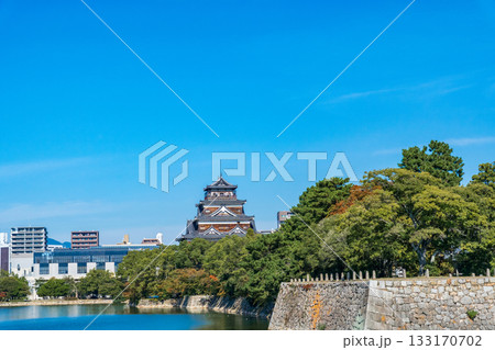 広島市 青空に映える広島城天守閣とお濠
