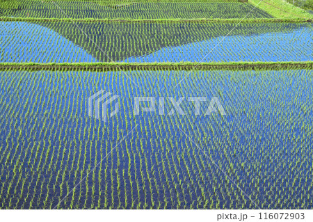 見栄えする田植え後 鏡写りの田 国道17号 猿ヶ京付近