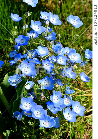 土手の家庭菜園でネモフィラの可愛い花が咲いていた