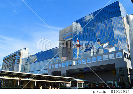 初秋の空と京都タワーが映り込んだJR京都駅ビルがキレイ