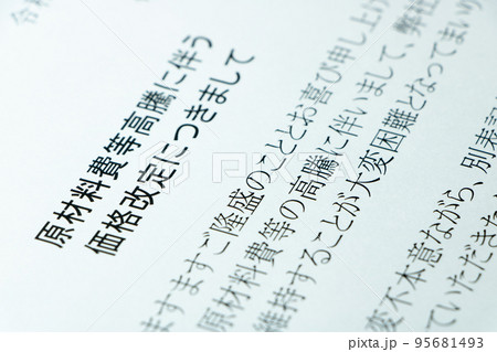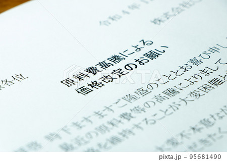 「原料費高騰による価格改定のお願い」の文書。