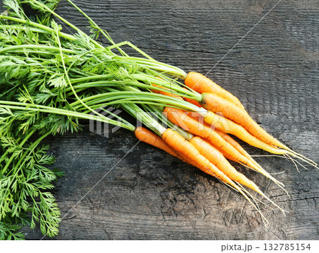 Fresh Carrots bunch. Baby carrots. Raw fresh organic orange carrots. Healthy vegan vegetable food. Fresh Vegetable.