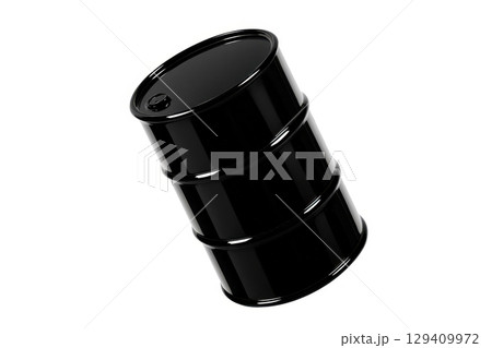 Shiny black oil barrel isolated on a pure white background, industrial fuel container