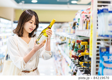 ワインを購入する若い女性