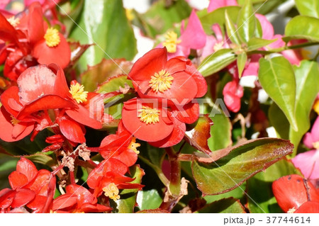 調布の植物園に咲く赤いベゴニア