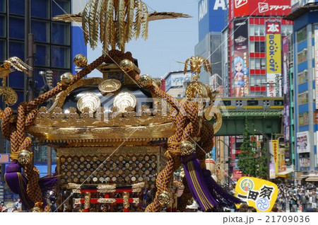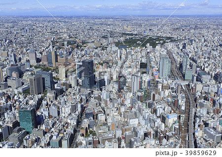 日本の東京都市景観 秋葉原駅前のオフィスビルなどを望む(奥に黒い山手線)
