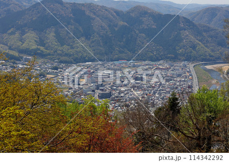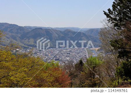 備中松山城の天守に至る坂道より高梁市中心部を望む
