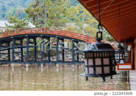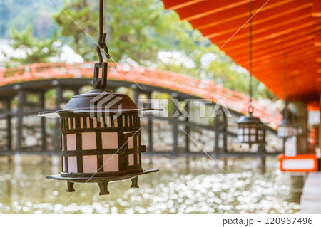 【広島宮島 厳島神社の吊灯篭と反橋】