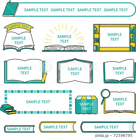 本のイラスト素材. カラフルな2種類のセット. 白背景にベクターイラスト.
