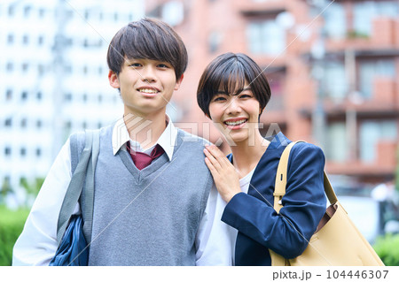 中学生 若い母親 始業式 受験日 高校受験 記念写真