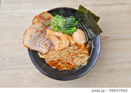 注)湯気は合成です。醤油らーめん、中華そば、しょうゆラーメン、チャーシュー麺。