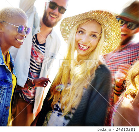 Friendship Bonding Relaxation Summer Beach Happiness Concept