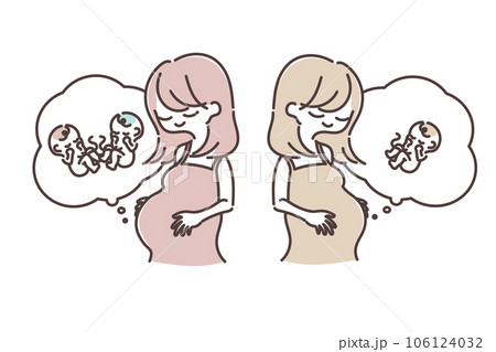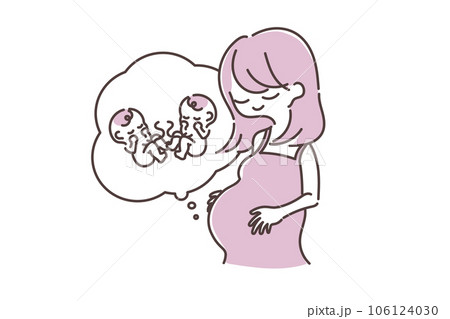 妊婦とお腹の中の赤ちゃんのかわいいイラスト素材 双子