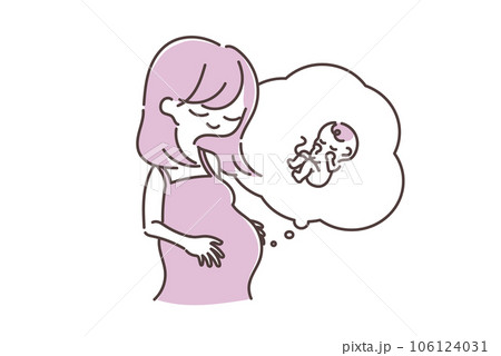 妊婦とお腹の中の赤ちゃんのかわいいイラスト素材 コピースペースあり