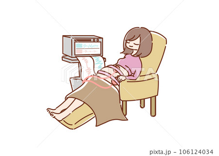 出産の兆候をNSTで検査する妊婦のイラスト