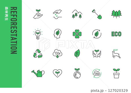 森林再生のシンプルなラインアイコン