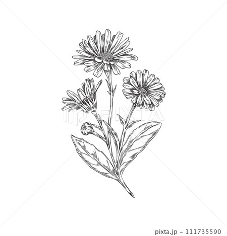 Vector illustration of wilting calendula inflorescence on isolated background.