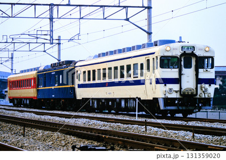キハ58系に挟まれて検測を行うマヤ34形(JR九州)