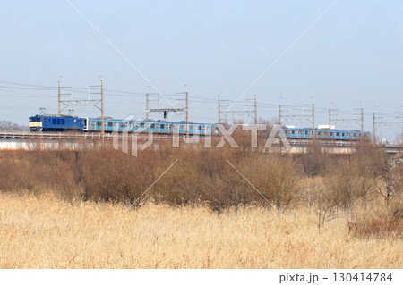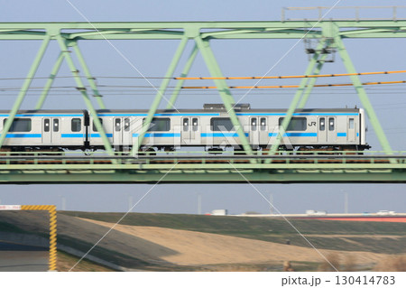 上越線の第一利根川橋梁を渡る武蔵野線E231系電車