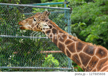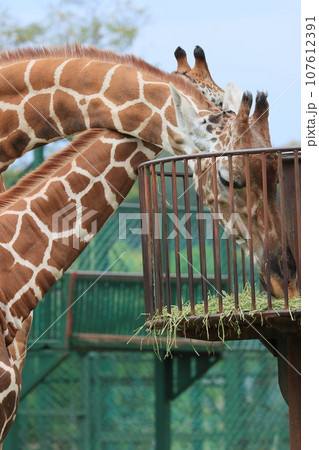 餌を食べるキリン アミメキリン