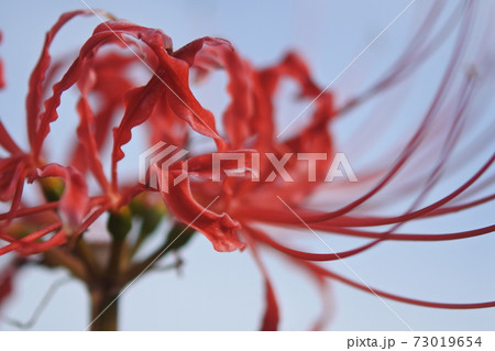 ヒガンバナ 赤い花びらも鮮やか。青空に映える。