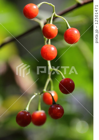 自然 植物 ヒヨドリジョウゴ、秋口から鮮やかな赤い実を実らせますが有毒です①