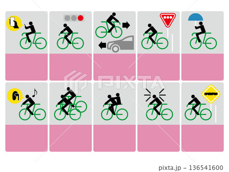 自転車の交通ルール違反のピクトグラムマーク、禁止アイコン