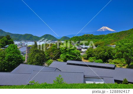 中部地方・韮山反射炉・物産館のお茶畑の展望所から眺める市街地と反射炉と富士山・静岡県伊豆の国市(2)