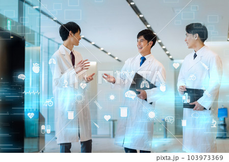 会議をする白衣の男性 撮影協力「LINK FOREST」