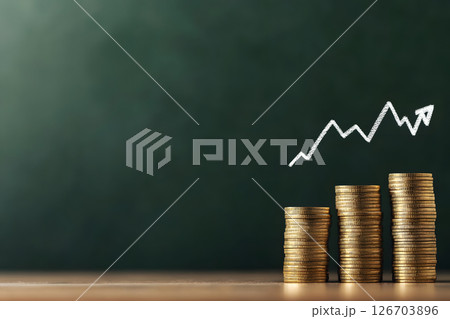 コインの積み上げと上昇する矢印のグラフ