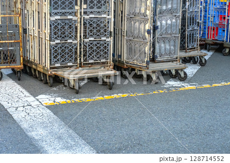 畳まれた配送会社のカゴ台車
