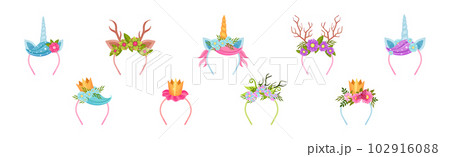 Hair Band and Headband with Decorative Flower, Horn and Antlers Vector Set