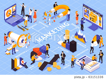 Marketing Strategy Isometric Flowchart