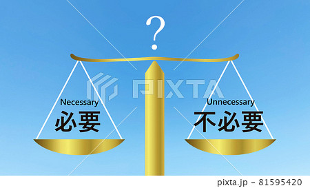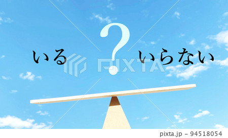 矢印の下向き道しるべと必要と不必要の文字_青空背景