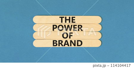 The power of brand symbol. Concept words The power of brand on wooden stick. Beautiful blue table blue background. Business the power of brand concept. Copy space.