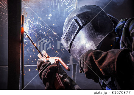 Industrial steel welder in factory technical, The