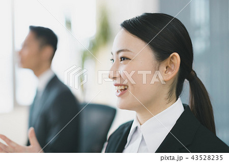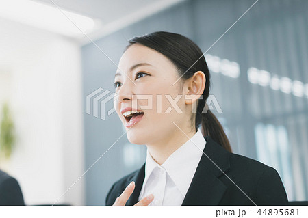 インタビューを受けるビジネスウーマン(取材・マイク)