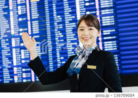 案内をする空港の女性グランドスタッフ 「撮影協力:関西国際空港(KIX)」