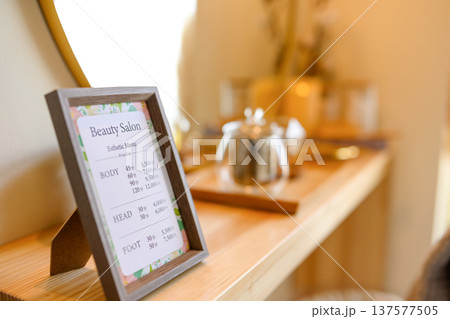 エステサロン・ネイルサロンでお客様にメニューの説明をする女性(タブレットPC)