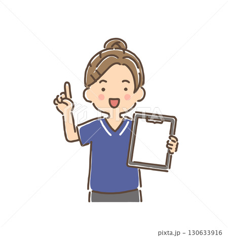 クリップボードを持ち人差し指を立てている若い女性看護師(フルカラー)