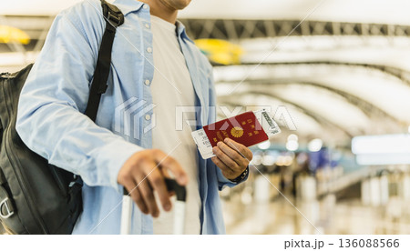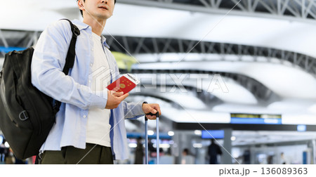 空港でパスポートを持つ男性 ■撮影協力:関西国際空港(KIX)