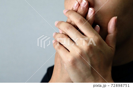 口が堅い男性のクローズアップ