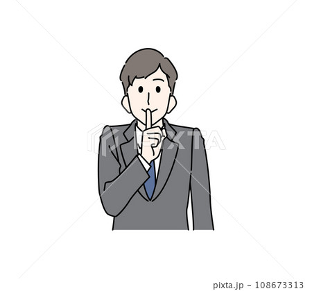 人差し指を口の前に添えて、内緒のポーズをする男性(スーツ)