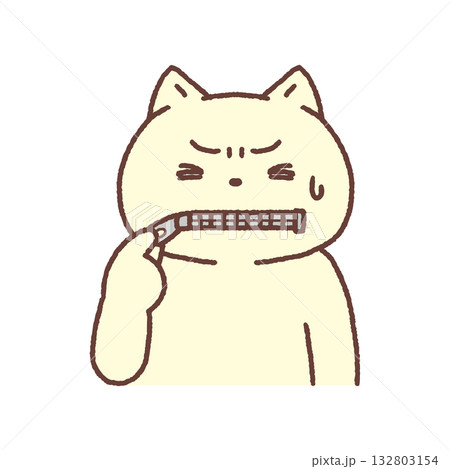お口にチャックする猫・黙る 線画