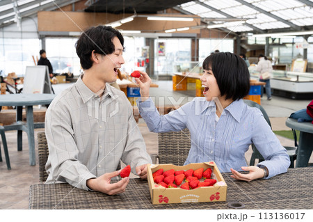イチゴを食べさせ合うカップル