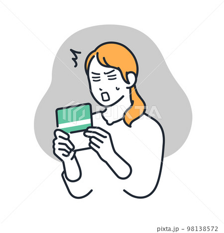 通帳を見てショックを受ける若い女性のシンプルなベクターイラスト素材