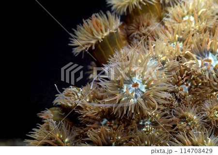 タテジマイソギンチャク 触手を伸ばす 海辺の生物
